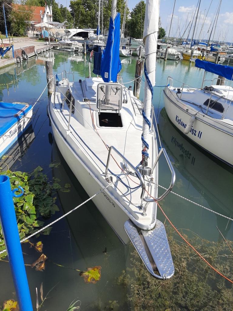 Balaton 25-ös vitorlás. Az orrkabinban egy kétszemélyes, a szalonban két egyszemélyes ággyal, hűtővel, fürdőplatformmal.